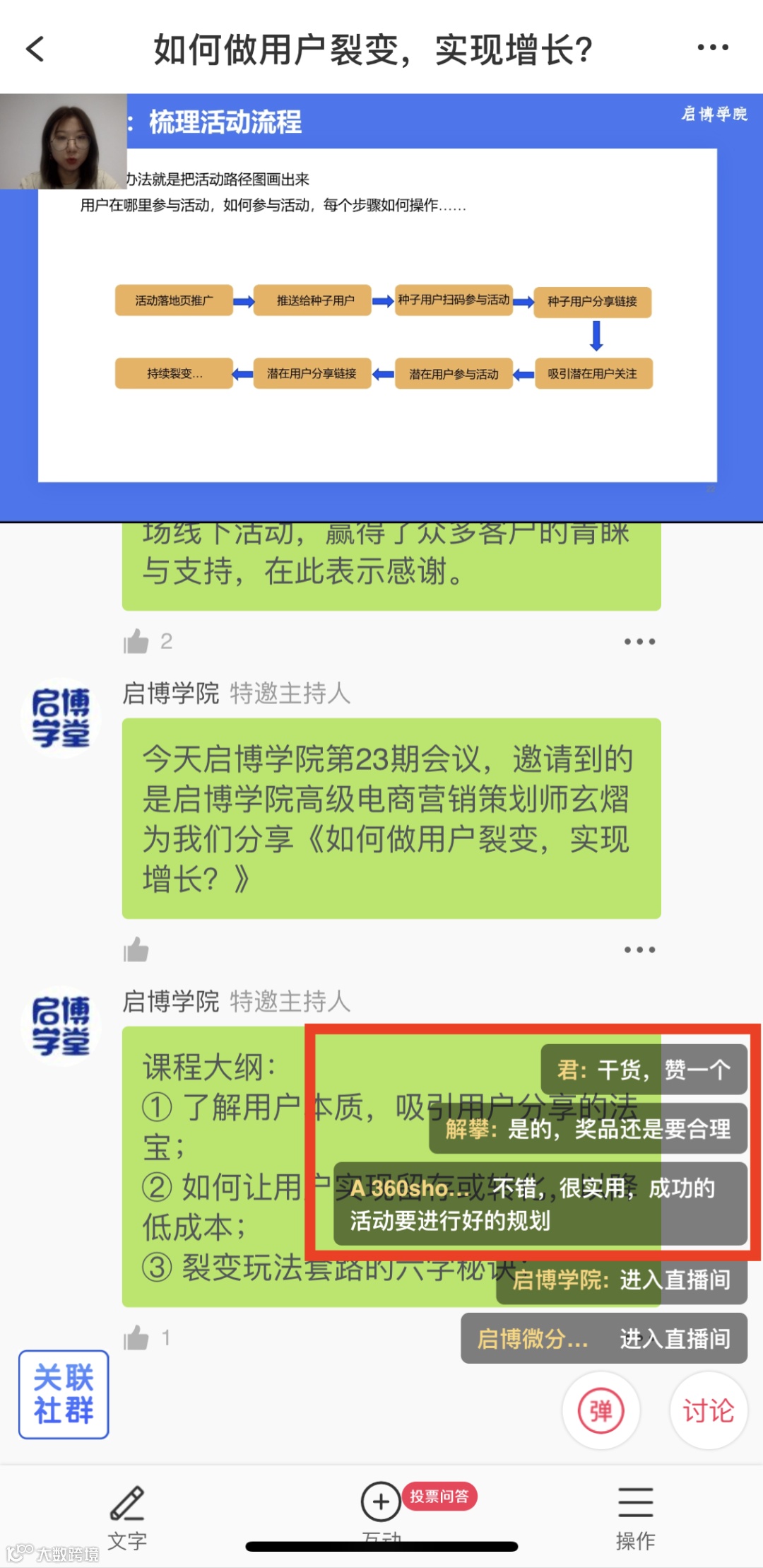 在课程中大家都收获了哪些用户裂变增长的要点呢?启宝来整理一下!