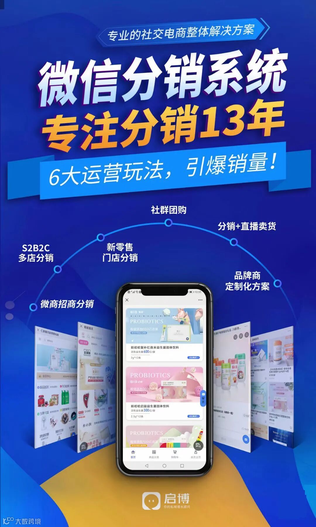 商家入局社交电商平台积累自有私域流量,在搭建微商城之后,最迫切解决的问题就是如何将商城内新上架的商品从0销量做到销量暴增,启博微分销有一系列专业的解决方案助力商家生意成功。