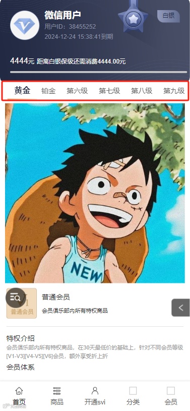 会员权益,目前只展示三个,新增到展示十个,如果商家设定的等级小于十个,则全部展示