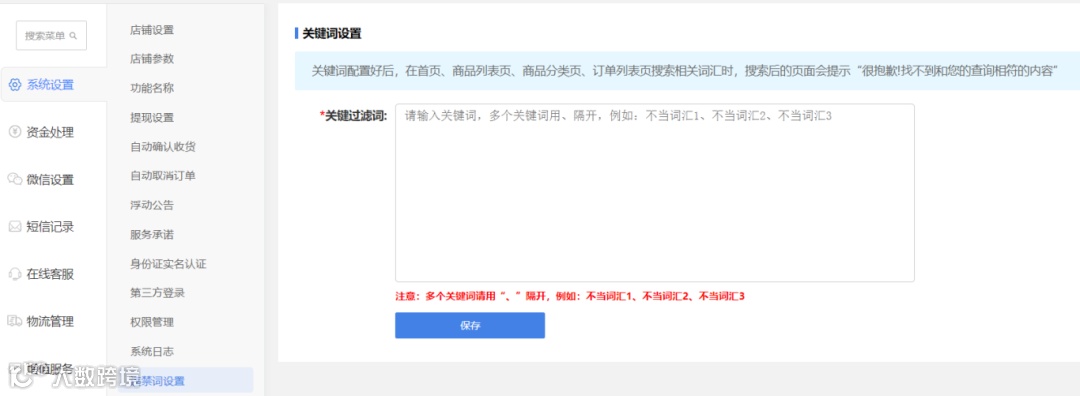 网络安全工作提示:网信部力推送相关风险提示,网站自带搜索引擎未设置有害关键字过滤,导致生成的搜索结果中包含有害信息链接或有害内容,易造成不良影响,商家可自行配置自己店铺的关键违禁词。