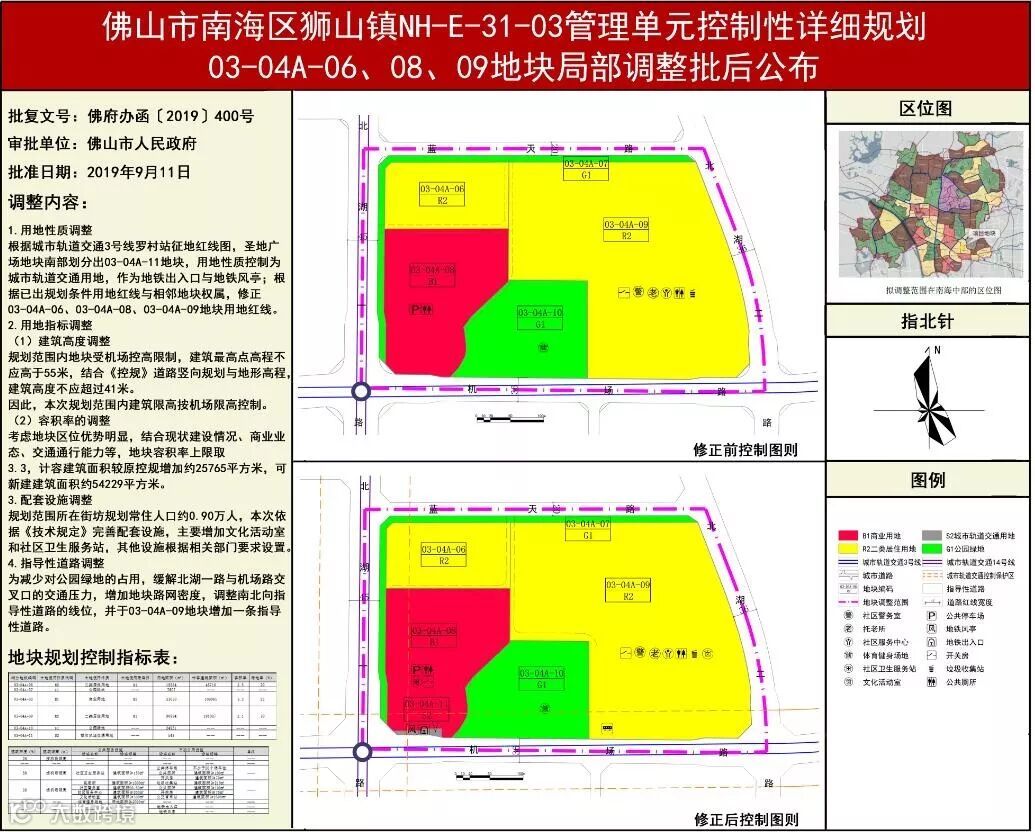 本次局部调整主要调整内容包括用地性质、用地指标、配套设施和指导性道路调整,其中指出规范区内建筑限高按机场限高控制,建筑高度不应超过41米。