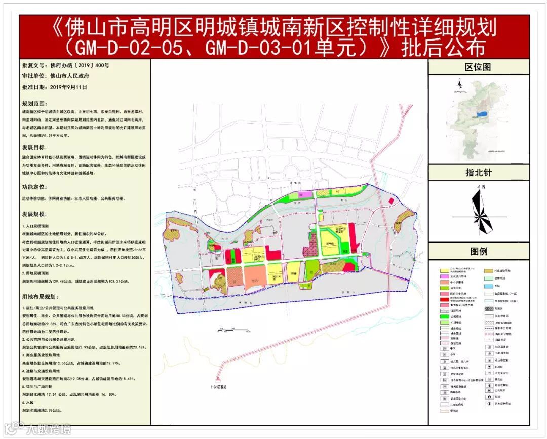 本次同步发布的区域控规中,还包括高明城南片区。根据最新批后公布的《佛山市高明区明城镇城南新区控制性详细规划》(GM-D-02-05、GM-D-03-01单元),城南新区部分区域将功能定位成运动体验功能、休闲商业功能、生态人居功能、公共服务功能。