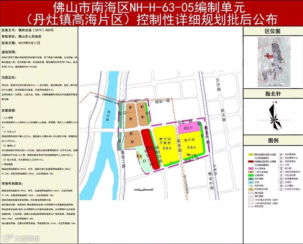 规划区为丹灶镇次级中心——金沙城区,通过樵金路、迎金一路与丹灶中心城区、丹灶新城共同发展,形成丹灶镇强中心。