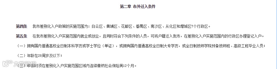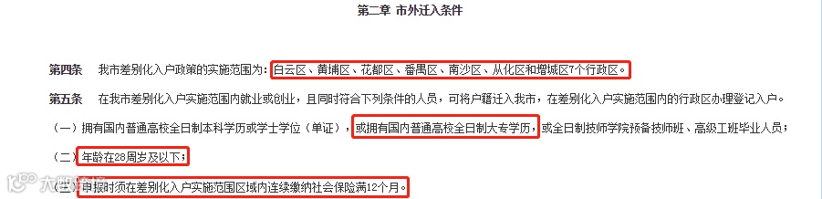 通告显示,广州差别化入户政策的实施范围为: