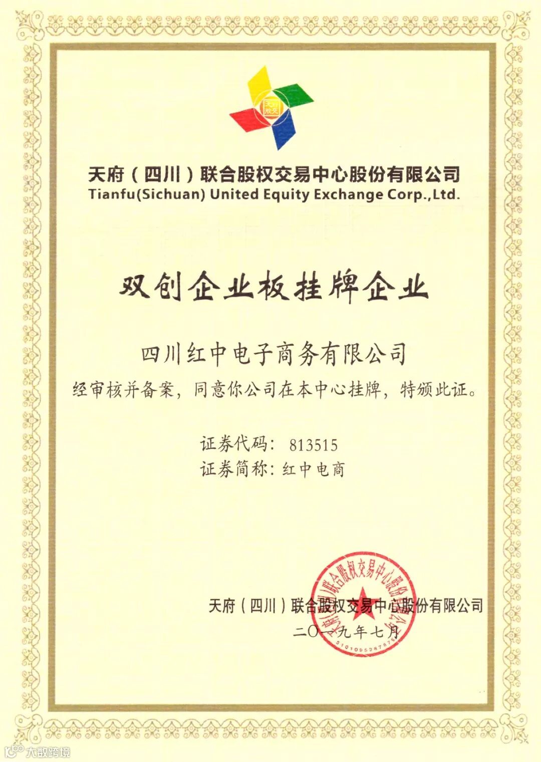 也正是因为红中e购的坚持,坚持两年和启博深度的合作,坚持搭建微分销综合性购物平台,才有了今天成绩,成功挂牌天府(四川)联合股权交易中心双创企业板,证券简称:红中电商,证券代码:813515。