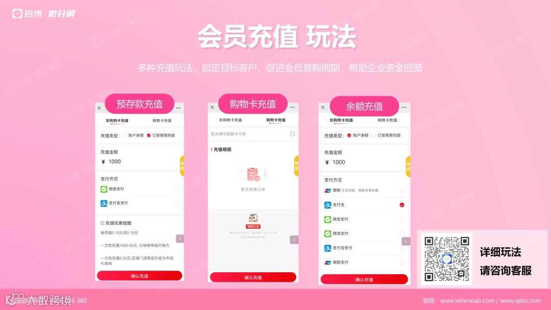 ② 对消费者:预充值,此后在商城下单可直接使用储值余额支付,方便顾客。而且通常商家会采取优惠政策吸引买家预充值,给买家带来优惠。