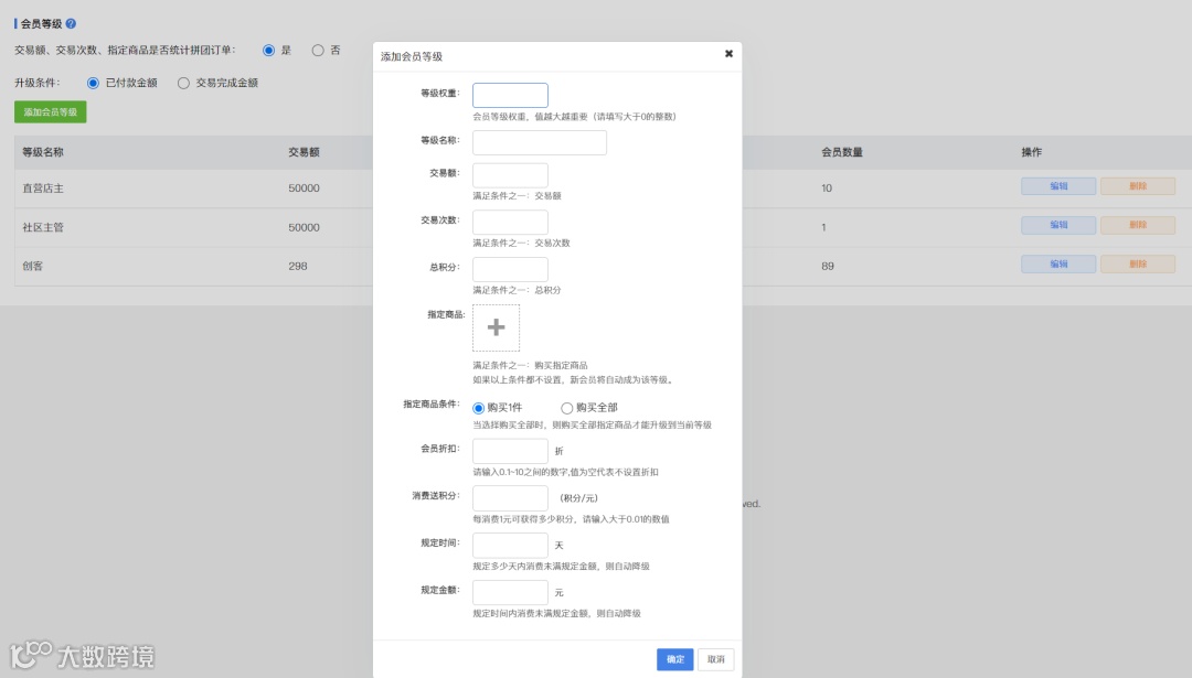 2、设定会员等级