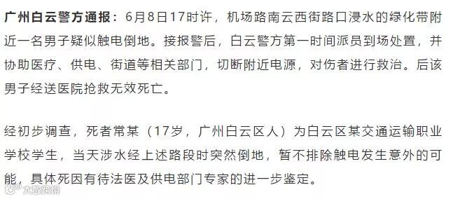 尽量选择没有积水的路段行走,如必须趟水通过一定事先保证积水内没有电线落入,避免水体导电而产生的触电事故。