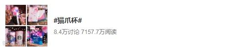 在新浪微博上,关于“猫爪杯”的各类衍生话题都呈现出了不错的声量。截至3月2日(今天)下午17点,#猫爪杯#话题的阅读量已达到了7157.7万,讨论量达到8.4万条,#星巴克猫爪杯#话题的阅读量达1.1亿,讨论量达7.6万条。目前数据还在进一步增长。