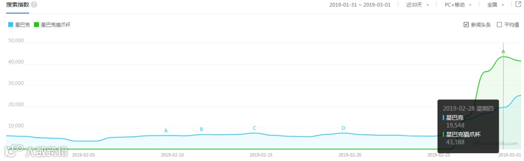 数据显示,2月28日,“猫爪杯”的百度指数已达到49,970次。