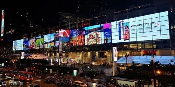 泰国曼谷的曼谷大道世界最大的电子屏上投放了广告,广告铺满整条街道,非常壮观: