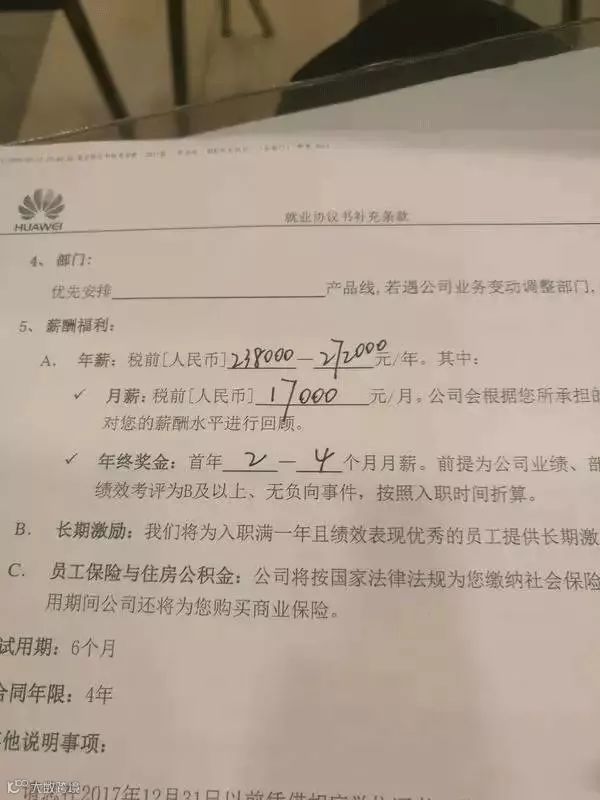 你知道华为的一名应届生年薪多少吗?27.2万!这是华为在南京高校招聘时曝光的一份合同: