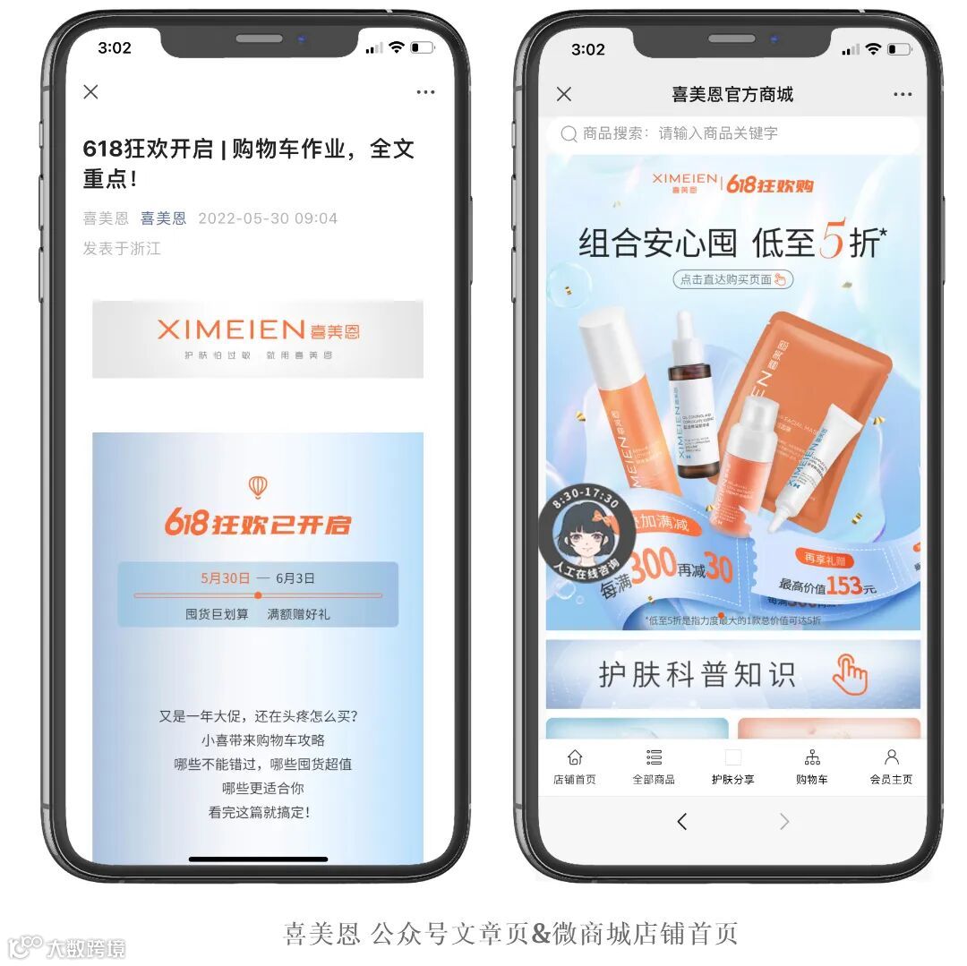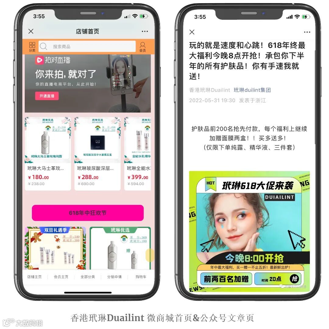 在“618”来临之际,上线了“年中大促”活动,限时购营销活动,限时秒杀、买赠、分销裂变等多重优惠福利给到消费者,护肤品前200名抢先付款,每个福利上继续加赠面膜两盒!多买多送!