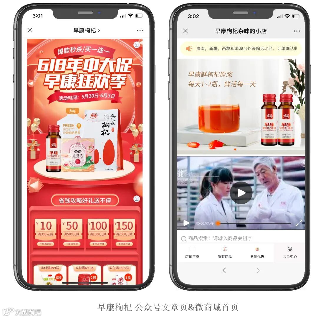 在“618”大促节日来临之际,早康枸杞微商城上线“618 早康狂欢季”活动,给到消费者“买一送一”、“买就送”、“满减优惠券”、“限时秒杀”等专享福利,做到最大让利,与客户形成互动,维护好客户关系,赢得良好口碑。