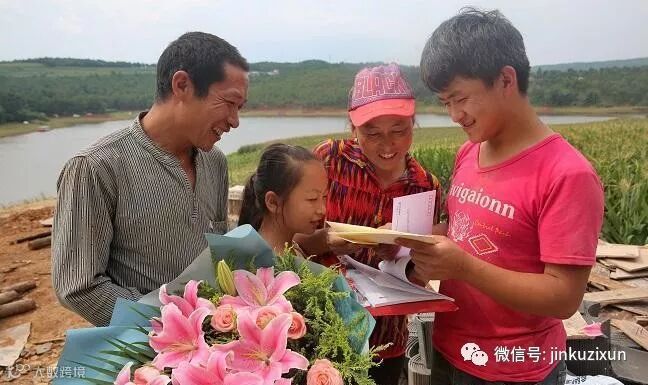 就在堆着建筑材料的工地上,一家子拿着那个红色的快件反复看。娘俩合力才把红色的大信封拆开,拿出了盼望已久的通知书。