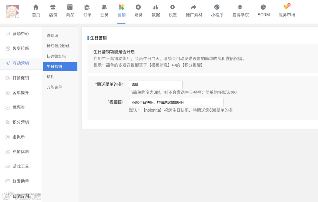 商家可以围绕这几个关键词来策划活动,如开心、玩笑、捉弄、有趣。启博微分销的近200+营销功能中,启宝给各位老板推荐这4款功能:生日营销、限时折扣、视频号营销方案、刮刮乐游戏。