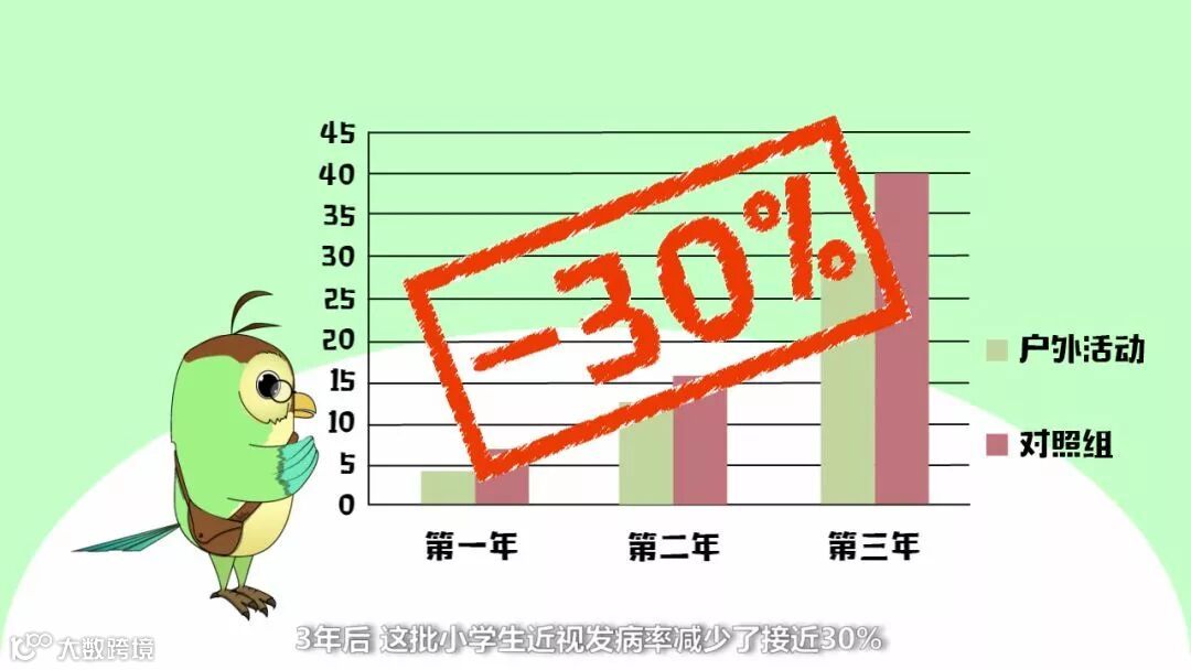 中山眼科中心曾与广州市中小学卫生健康促进中心合作,对广州市一批小学生进行了一项临床试验。每天平均增加20多分钟的户外活动时间,3年后,这批小学生近视发病率减少了接近30%。