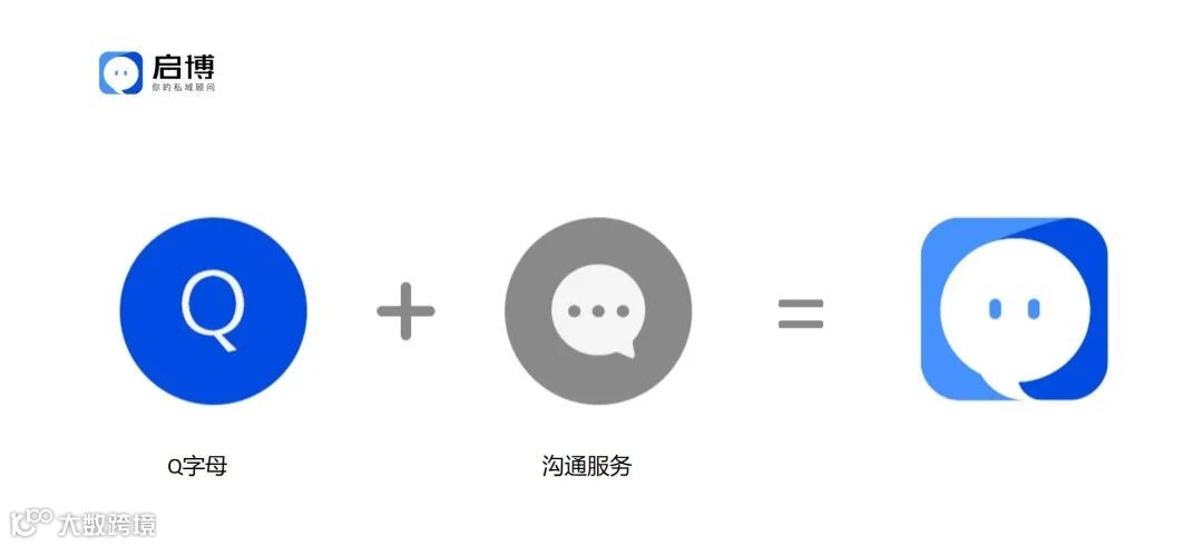 从设计标志上看,图形符号以聊天气泡为主图标,让整个启博LOGO醒目明快,气泡形状形似大写英文字母”Q”,象征着“启博”首字母的开头,形成一个聊天状态,中间取智能机器人眼睛,表达科技,外形圆润表达欢迎四面八方的商家。
