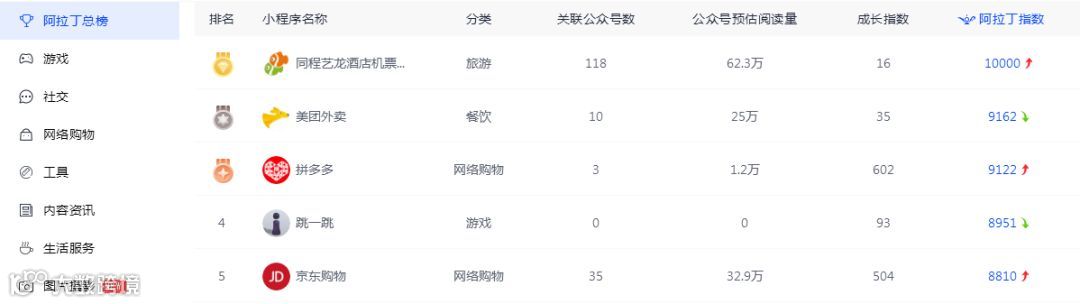 据阿拉丁指数最新数据显示,在当前的小程序排行榜前50名中,京东旗下拥有的小程序占据了3个名额,其中“京东购物小程序”排名第5。不仅如此,京东还上线了另外几个定位不同的小程序。