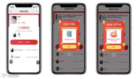 抽奖团:活动结束时,从所有成团成功的订单中随机选取指定个数的订单作为中奖订单,未中奖者会退回订单全部款项,并获取相应优惠奖励及返现(返回会员余额)。
