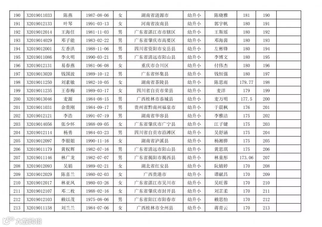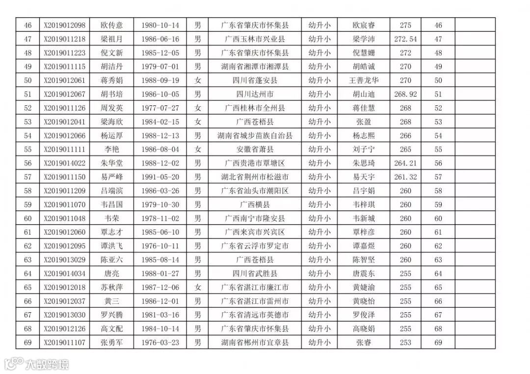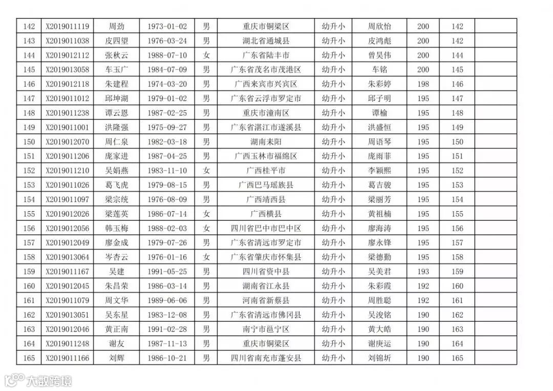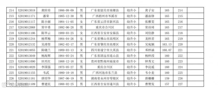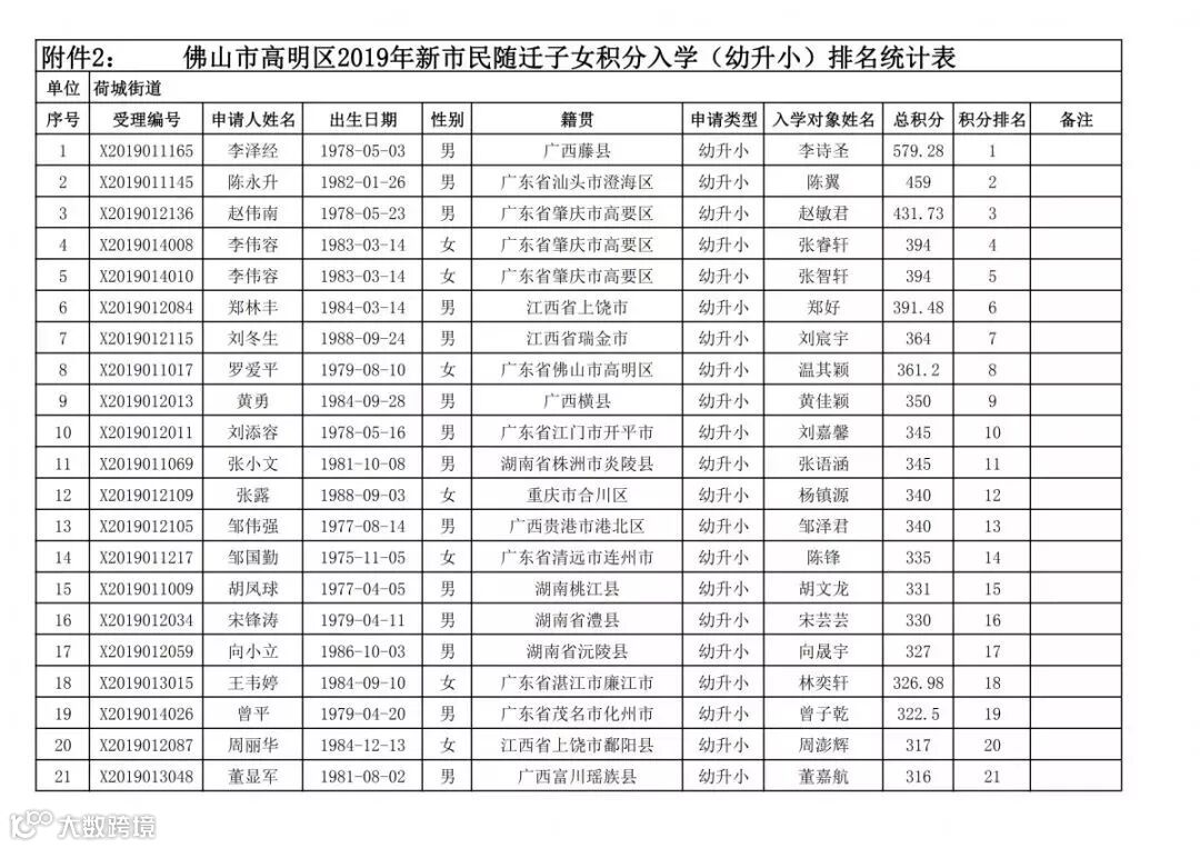 高明区2019年新市民随迁子女积分入学(幼升小)排名统计表(荷城街道):
