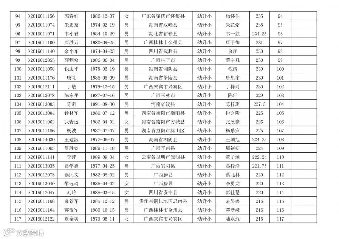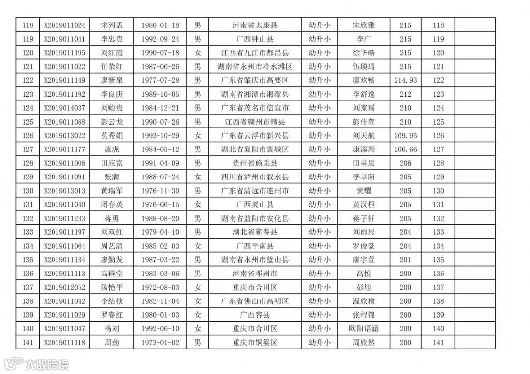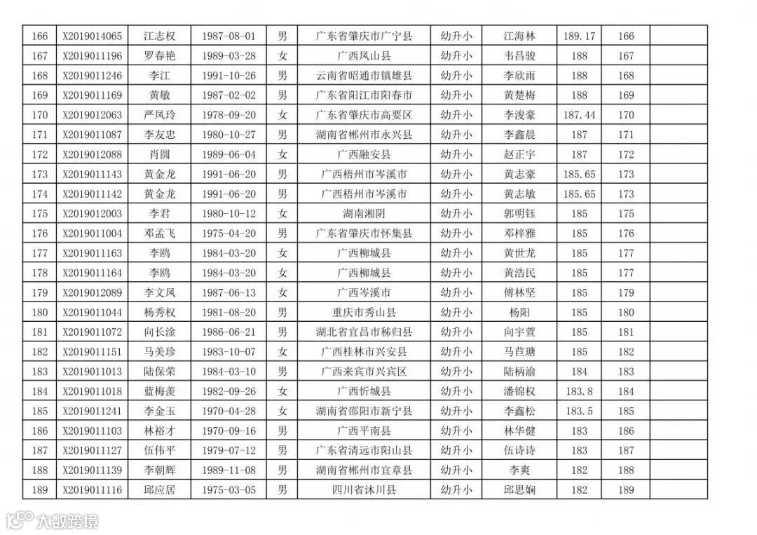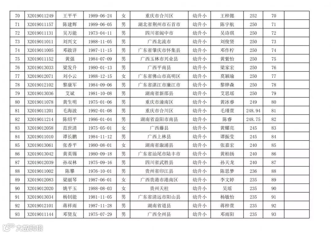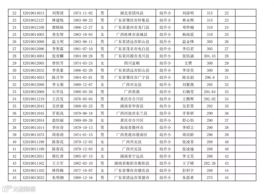 高明区2019年新市民随迁子女积分入学(幼升小)排名统计表(荷城街道):