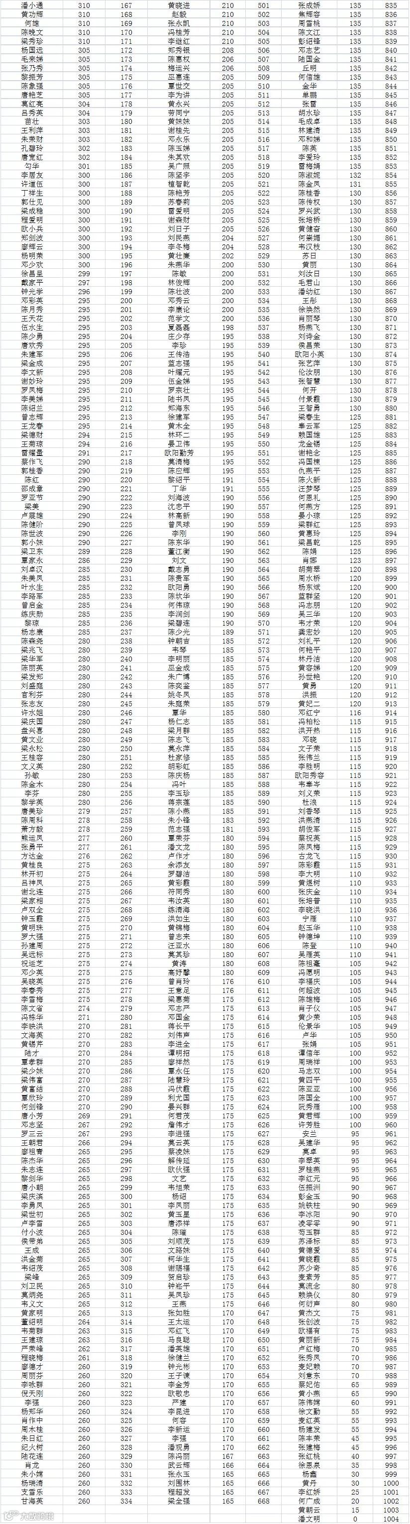 禅城区新市民积分入学公示名单中,小学组共有1514名,初中组共有1004名。如对公示结果有异议,请向禅城区新市民事务办反映,联系电话:82321916。