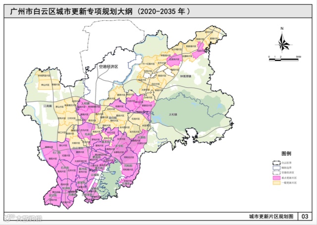 近日,广州市规划和自然资源局白云区分局发布了关于《广州市白云区城市更新专项规划大纲(2020-2035年)》(决策征求意见稿)。意见稿显示,白云区近期将完成南北向交通走廊沿线及重点片区的城市更新,中远期基本完成全区重要功能区域和重要节点的城市更新。
