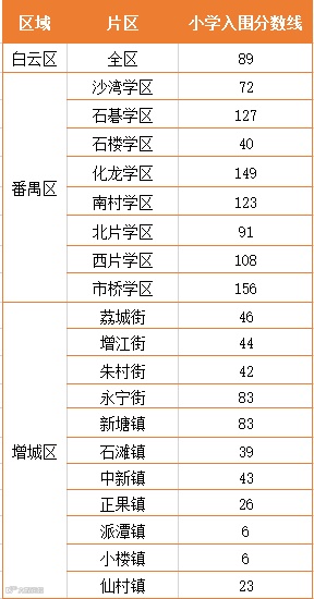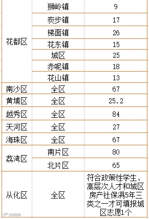 番禺区、花都区、南沙区和天河区无入围名单,在积分资格名单内的都可填报志愿,此表以对应片区录取的最低分作为参考;