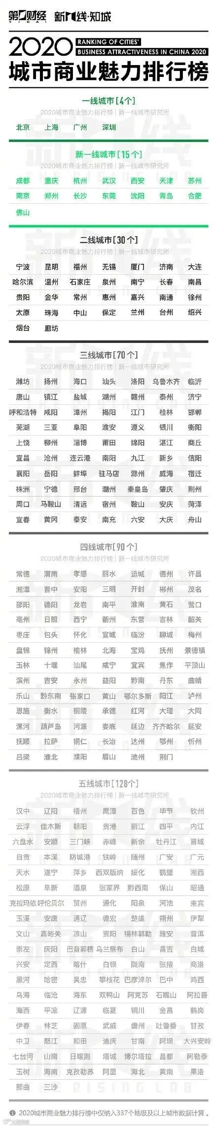 2020年城市分级完整名单