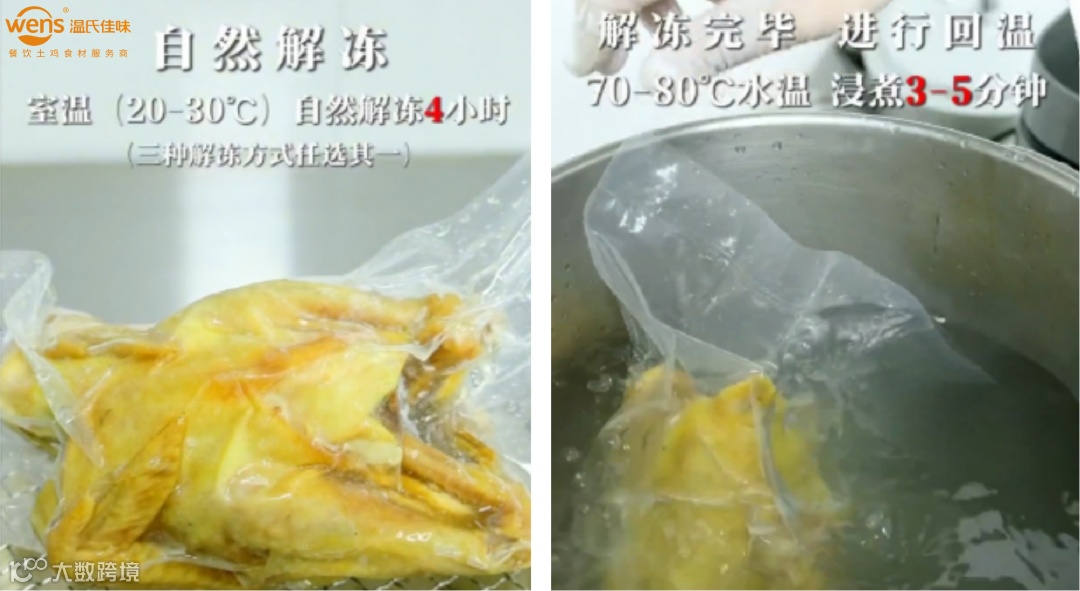 →拆封外彩带包装后20-30°C自然解冻4小时,随后70-80°C热水里回温3-5分钟。