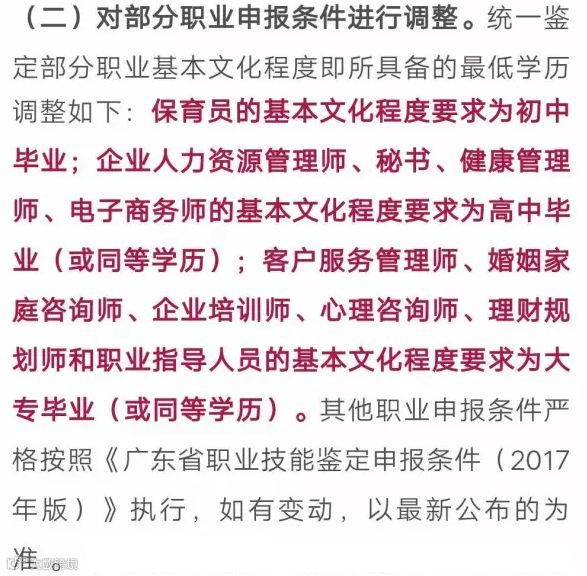 其实,早在2017年8月,广东省职业技能鉴定指导中心就发布了一则《关于进一步明确我省职业技能鉴定申报工作要求的通知 》,其中,对我们影响最大的就是调整了部分职业资格的申报条件。