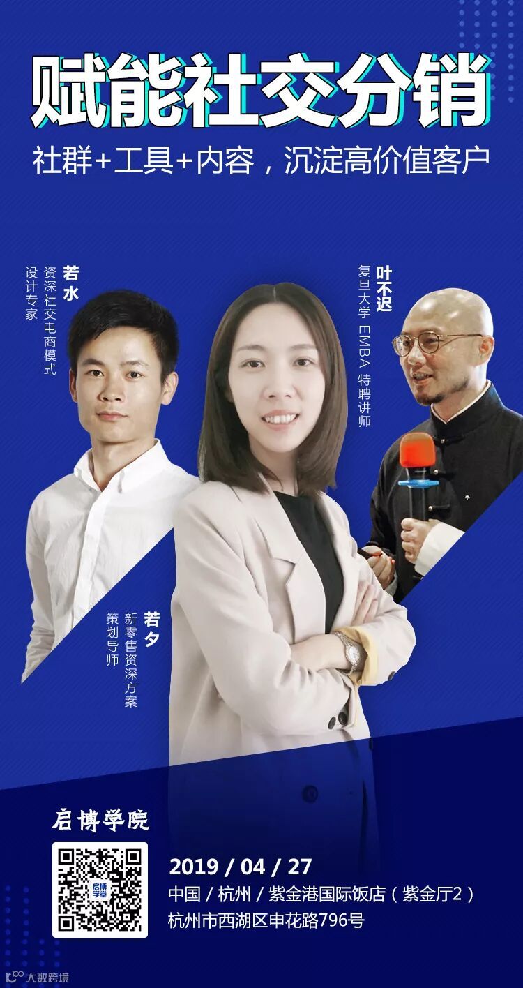 不管怎么样,抓住每一次与外界交流的机会,听听大咖的经验方法,来参加启博学院特意为你准备的这场在杭州的赋能社交分销,如何沉淀高价值的用户。
