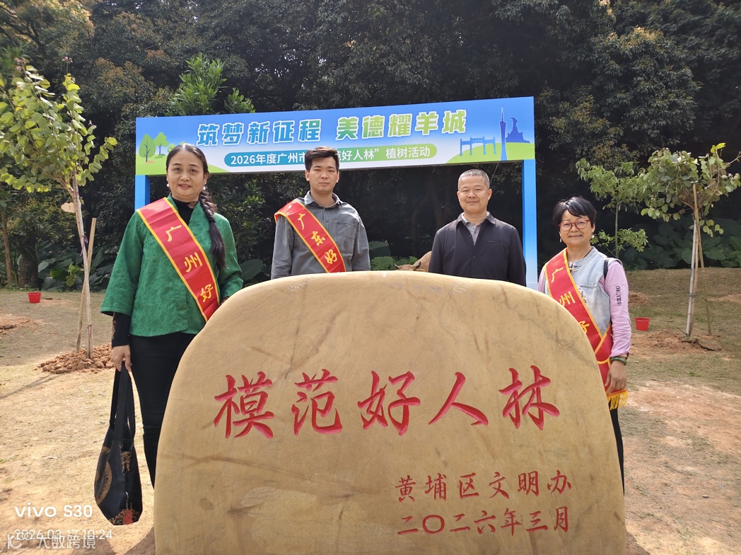 为进一步发挥模范好人的引领带动作用,推动在全市各区遍植“模范好人林”,市文明办会同黄埔区近日在长岭植树公园开展“筑梦新征程 美德耀羊城——2026年度广州市‘模范好人林’植树活动”。我司员工朱丙廉受邀参加本次植树活动。与全市各级道德模范、身边好人代表齐聚一堂,挥锹培土、共植新绿,以实际行动践行生态责任,传递好人精神,彰显我司职工的责任与担当。