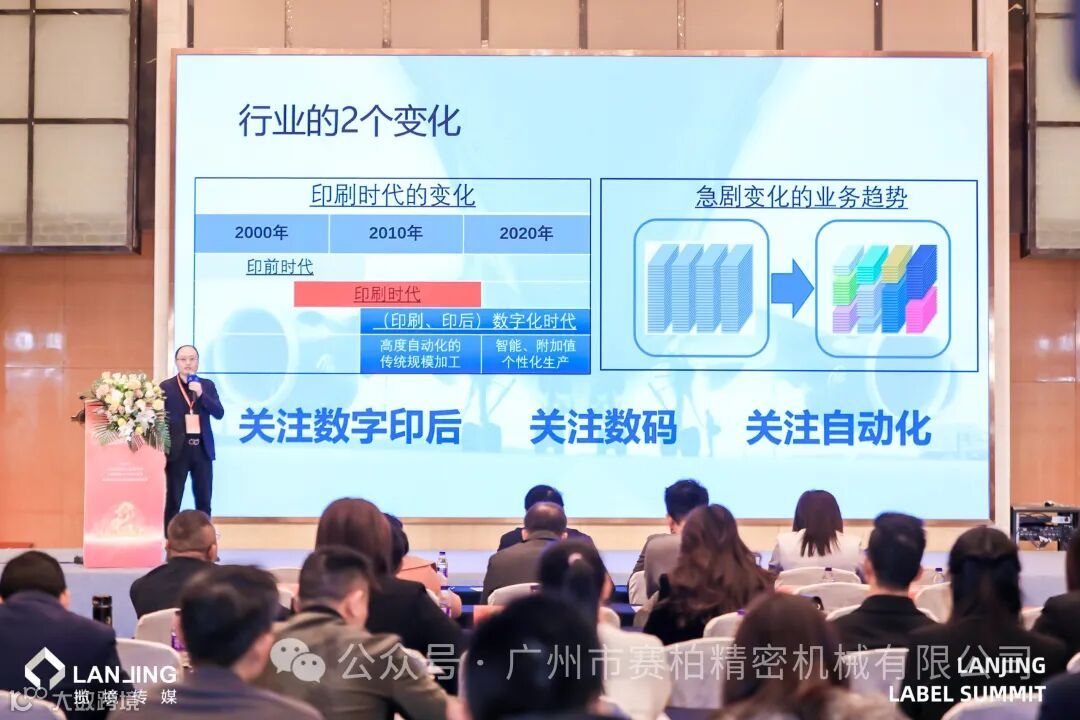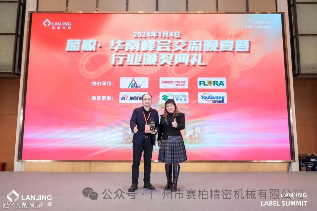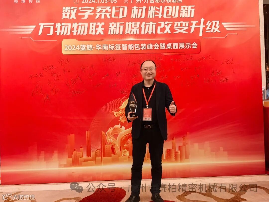 2024开启新篇章-蓝鲸华南标签智能峰会暨桌面展示会在广州万富希尔顿酒店隆重召开,广州市赛柏精密机械有限公司受邀参与。会上,总经理宋成先生发表精彩演讲,为大家分享德曼仕DMS创新数字增效整饰解决方案,共同探讨与推动创新的行业应用,为印刷品提供更高附加价值。