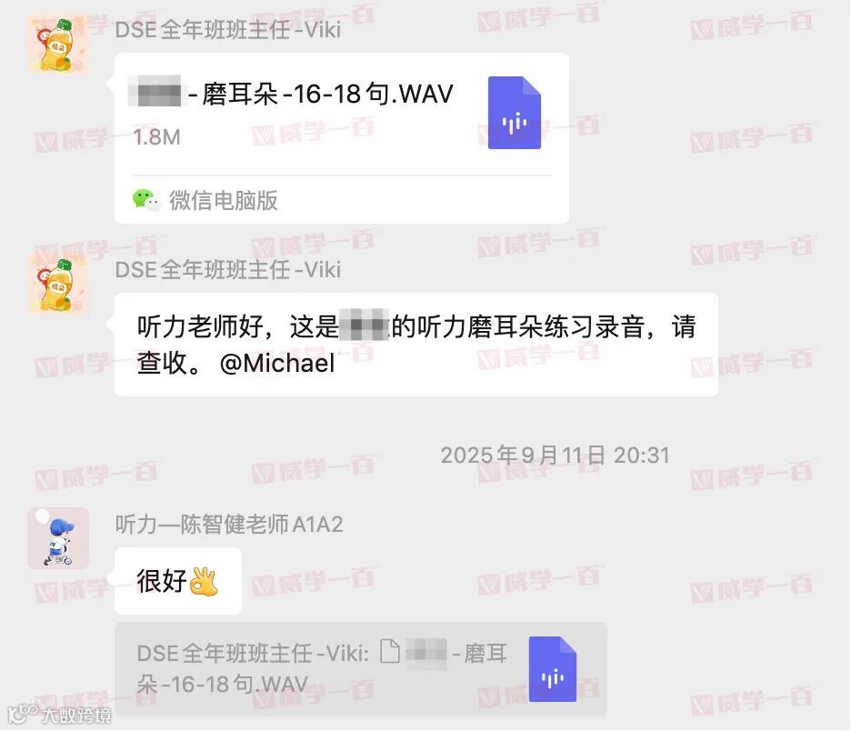 我们针对不同基础的学生定制差异化听力提升方案。对于基础较弱的学员,每日精听课上,老师会逐句精讲听力Part A(Task 2 - Task 4),带领学员跟读模仿、吃透每一个语音细节与答题要点;课后需完成精听+听写双重任务,并向助教老师复述听写内容,通过“精听-听写-跟读”以及“学-练-复”的闭环模式深化学习效果。