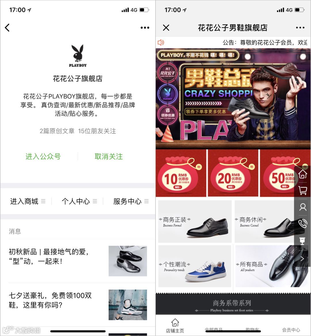 品牌门店遍布全国的花花公子,近几年开始发力线上市场,合作启博微分销,搭建“花花公子男鞋旗舰店”,通过社交分享完成裂变引流,扩大品牌影响力。