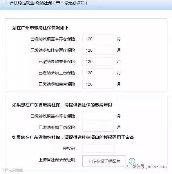 在广州市就业(创业)并参加城镇基本养老保险、社会医疗保险(含职工社会医疗保险及城乡居民医疗保险)、失业保险、工伤保险、生育保险,每个险种每满1年计1分