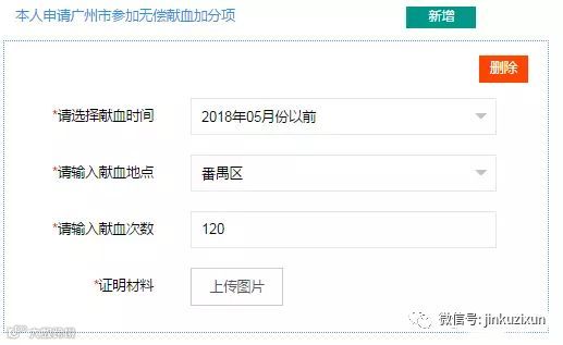 其中,除“番禺”、“从化”、“花都”、“增城”四区外,其他区域无偿献血的信息点击新增后将反馈系统查询信息,“番禺”、“从化”、“花都”、“增城”四区献血信息需手动填写。如需填写多年信息,请再次点击新增按钮。
