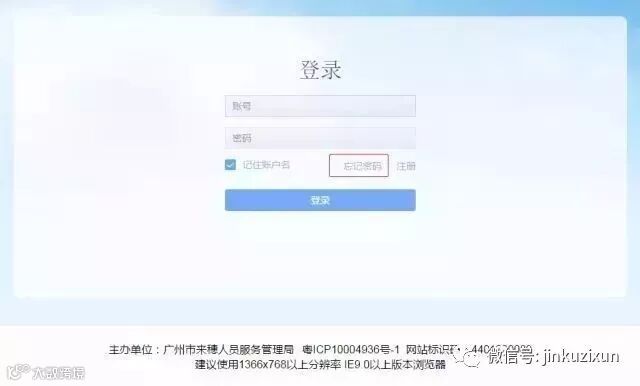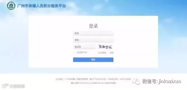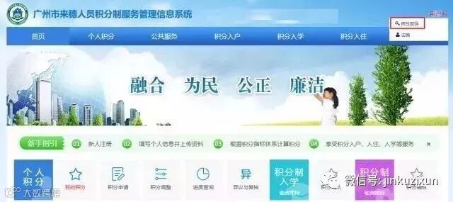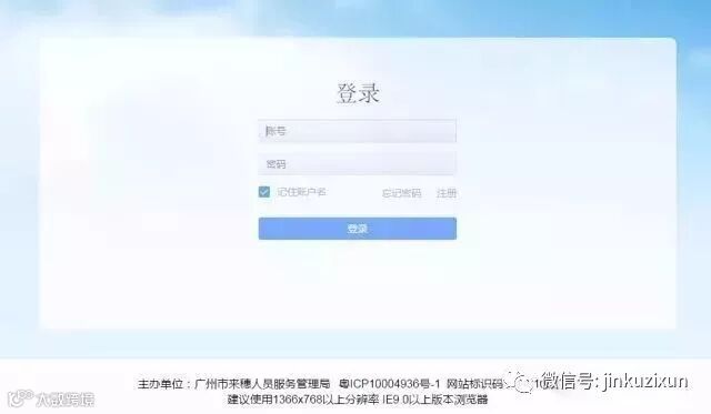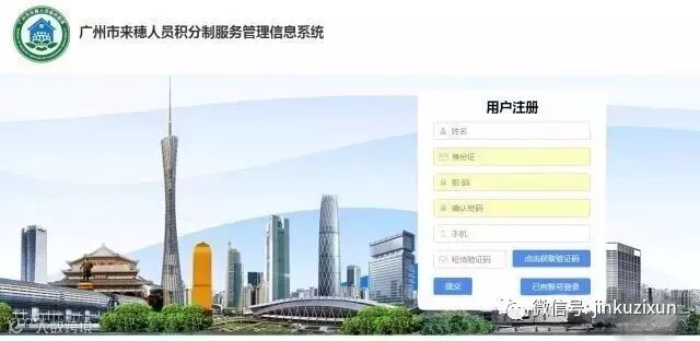 进入广州市来穗人员积分制服务管理信息系统注册登录。