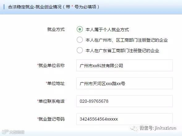 1.个人就业信息无需提供材料,以广州市政府信息共享平台系统查询为准 2.在广州市、区工商部门注册登记的企业无需提供资料,