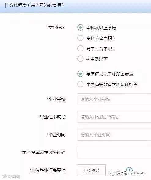 1.本科及以上、专科学历登录中国高等教育学生信息网进行在线验证的,提供有效期内的《教育部学历证书电子注册备案表》(原件核对)