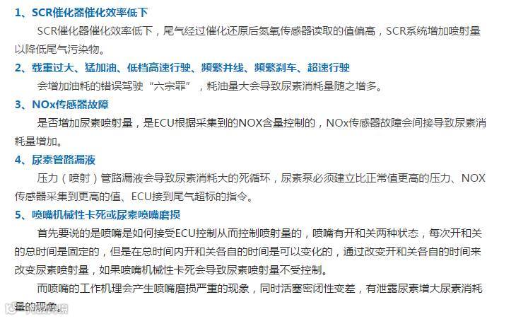 导读:尿素消耗量大,太多的人会归咎于尿素浓度或尿素品质,殊不知后处理的各个运行环节都会对尿素消耗产生非常大的影响,且一般不是尿素泵的问题,当NOx传感器读值偏高、发动机排量超标、SCR催化器催化不完全等都会