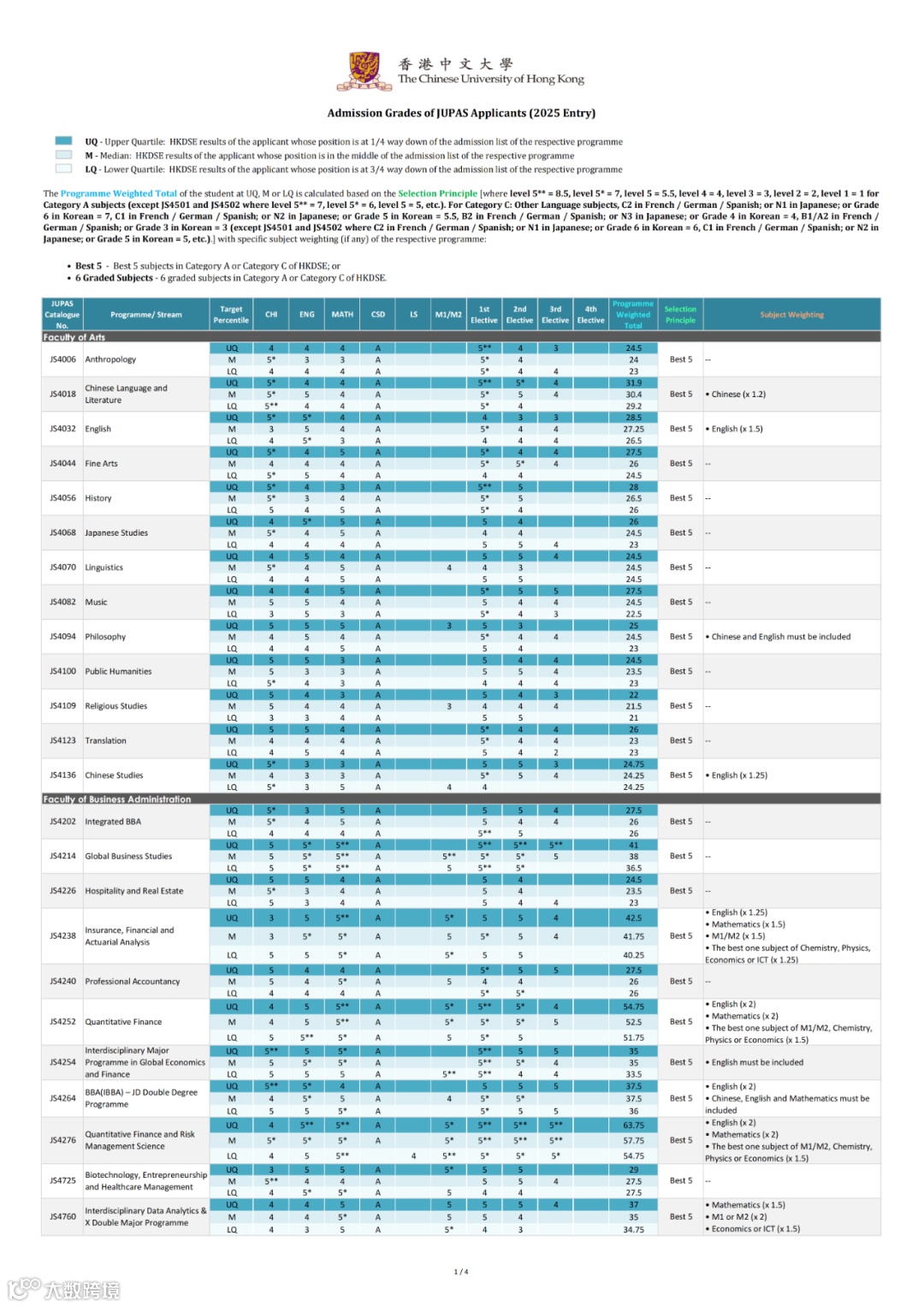 这不,香港中文大学最新公布了2025年本科入学DSE分数线,包含上四分位数、中位数、下四分位数三大核心指标,对比去年数据,不少热门专业分数有明显变动,今天就帮大家把重点拎清楚,志愿填报时更高效!
