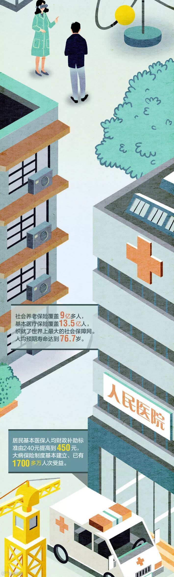 医疗:居民基本医保人均财政补助标准再增加40元。扩大跨省异地就医直接结算范围。