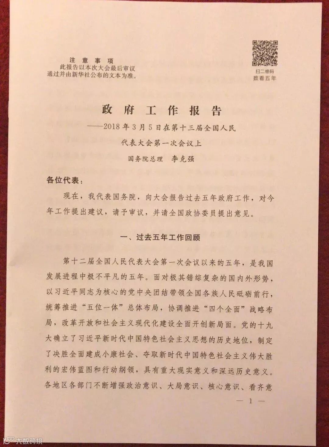 第十三届全国人民代表大会第一次会议在人民大会堂举行开幕会,以下是政府工作报告。