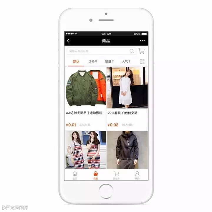 同时提供5种商品浏览方式:默认、价格、销量、人气和切换浏览