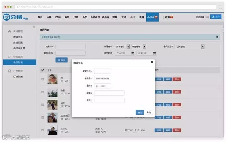 编辑页:编辑会员信息