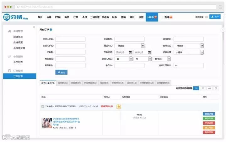主要包括 查询项、订单状态列表统计项和订单操作