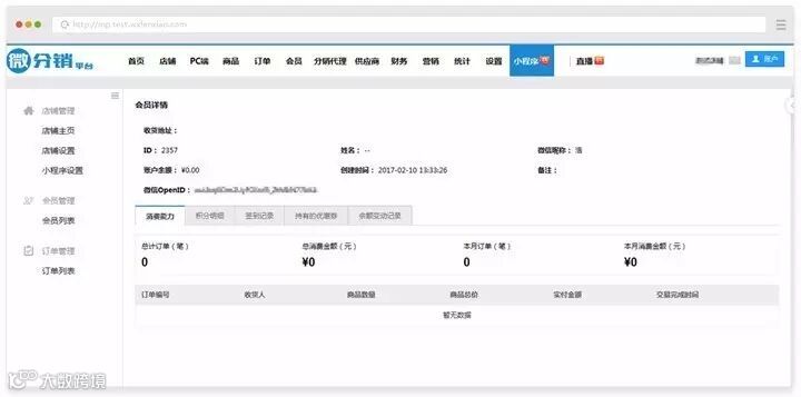 详情页:查看会员的信息和消费统计